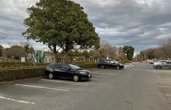 駐車場は遊具に隣接する南口第2駐車場がおすすめ。ここから待合せ場所まで徒歩1分くらいです。